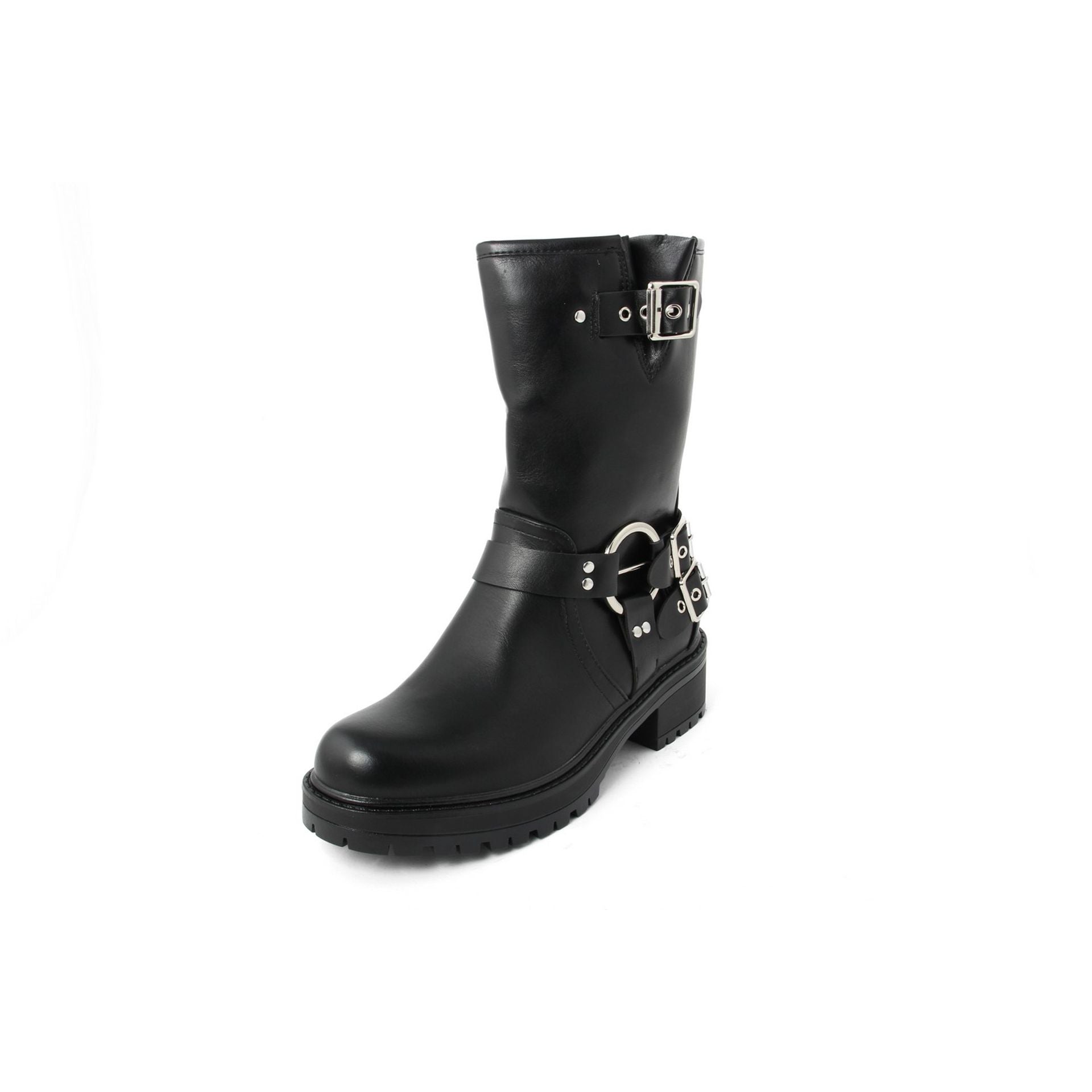 Details:bucklesround toeside zip